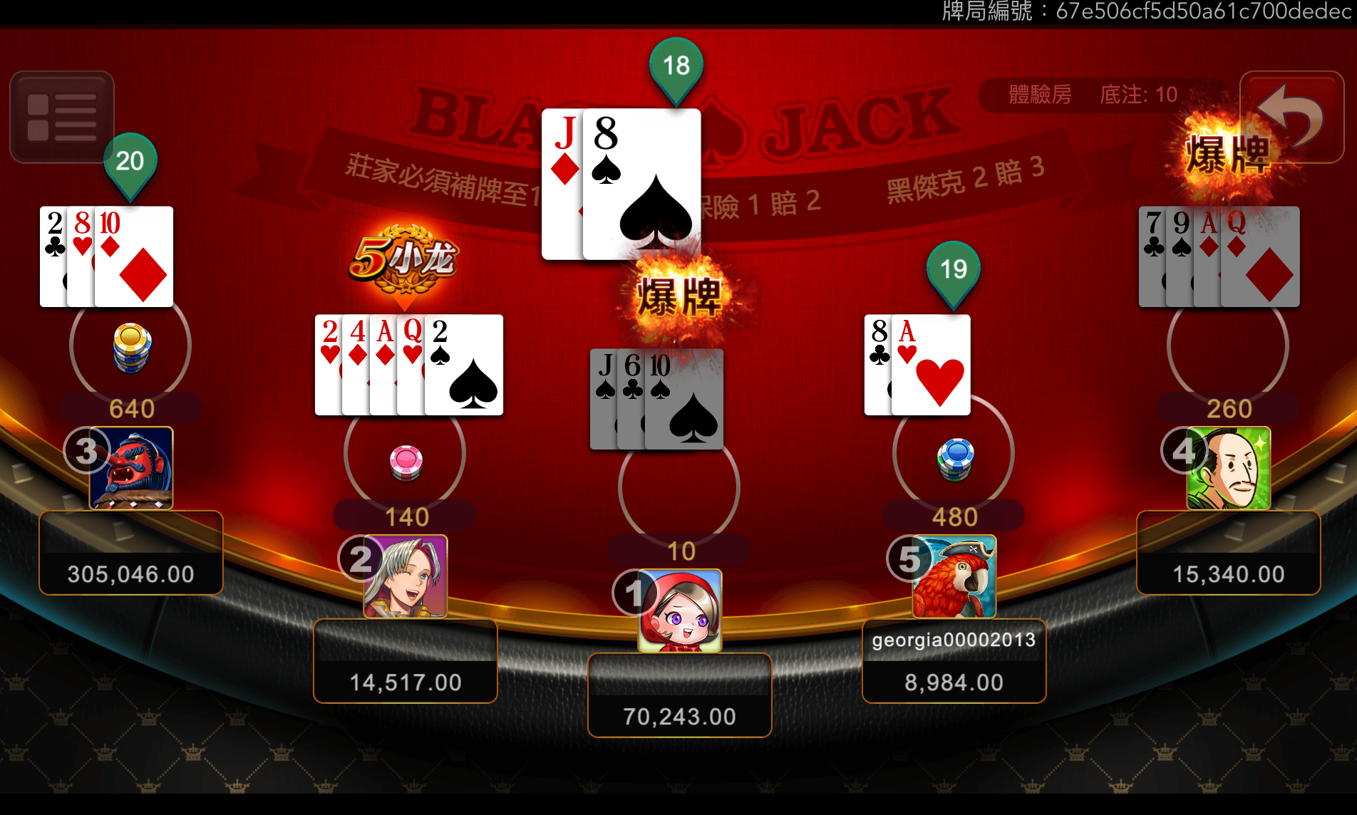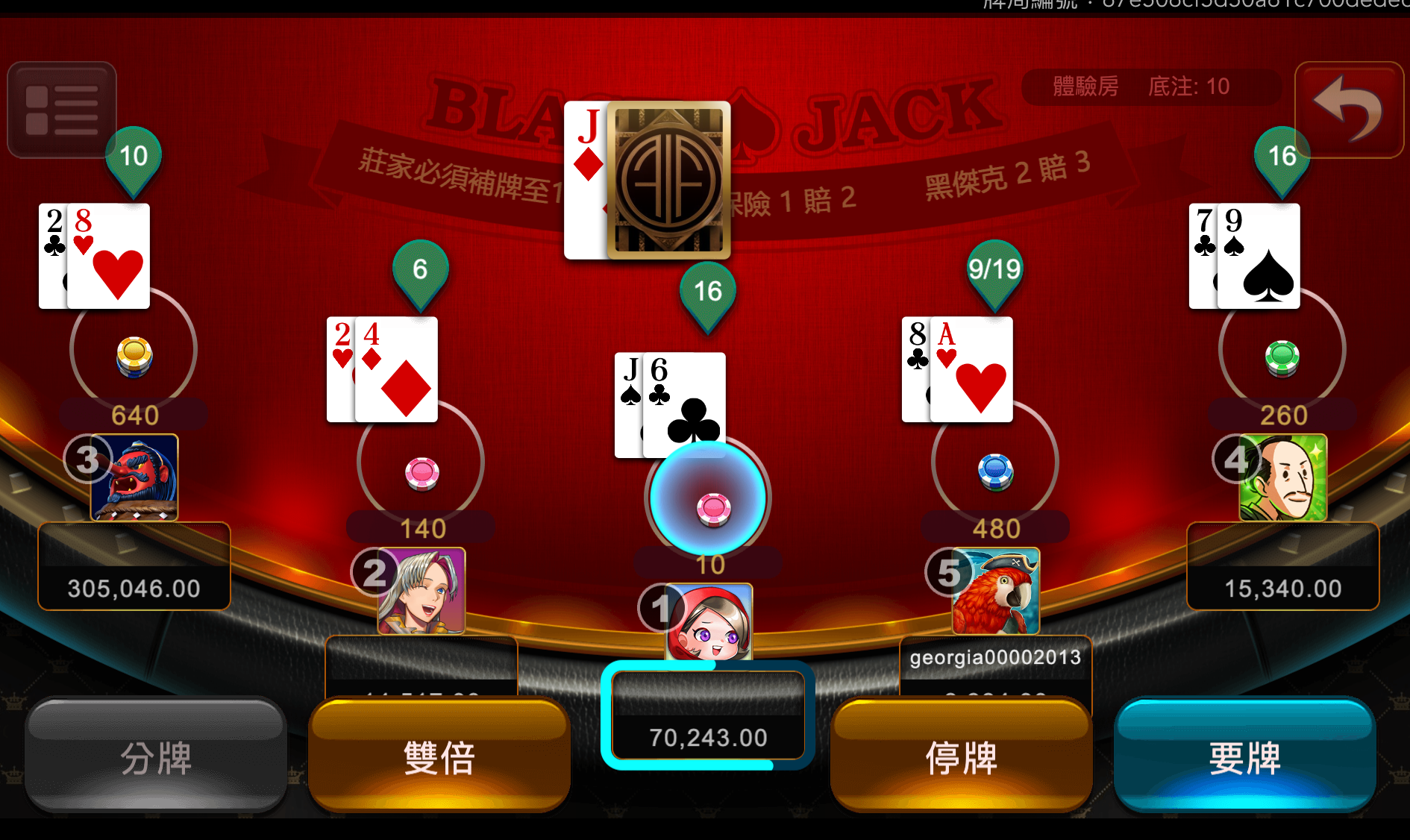 - 選擇權:玩家可要牌、停牌、加倍、分牌等多樣行動,讓您能主動出擊。