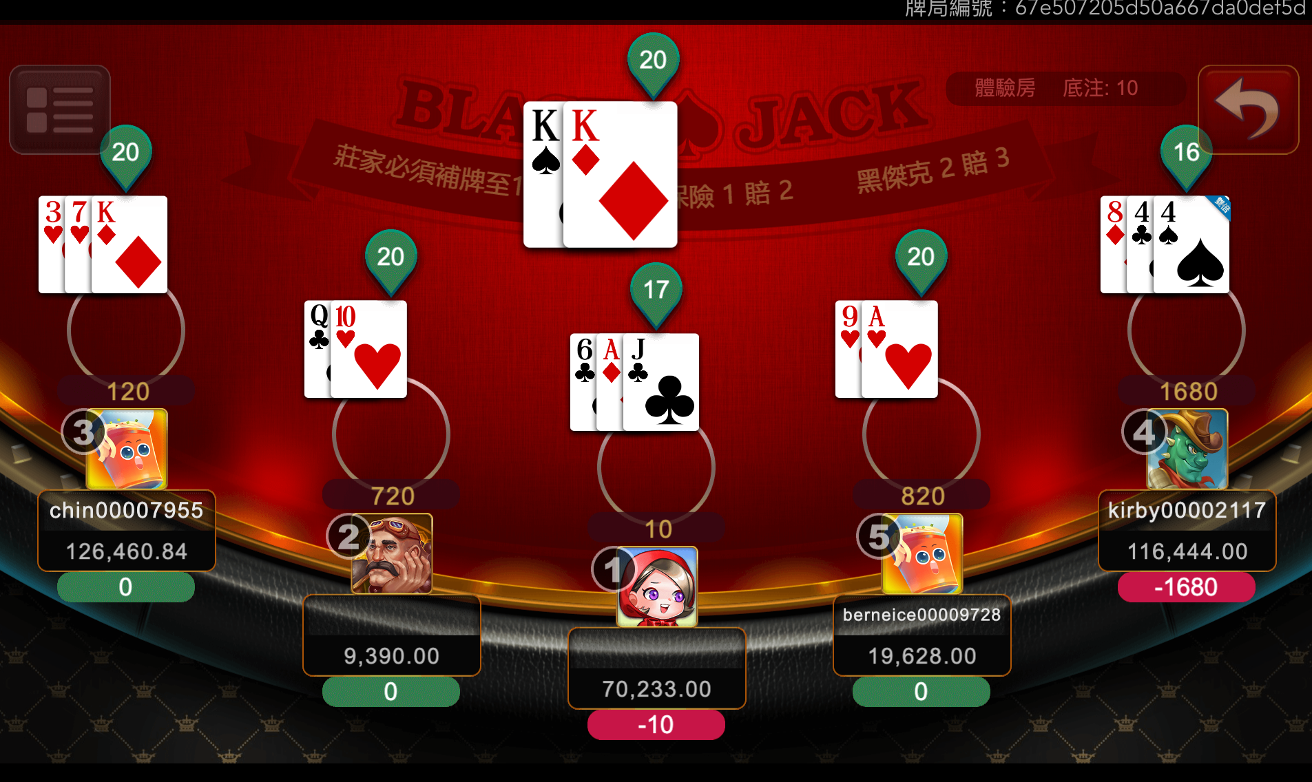 - 發牌:每位玩家與莊家各獲2張牌,玩家牌面全公開,莊家一張明牌、一張暗牌,增添懸念。
